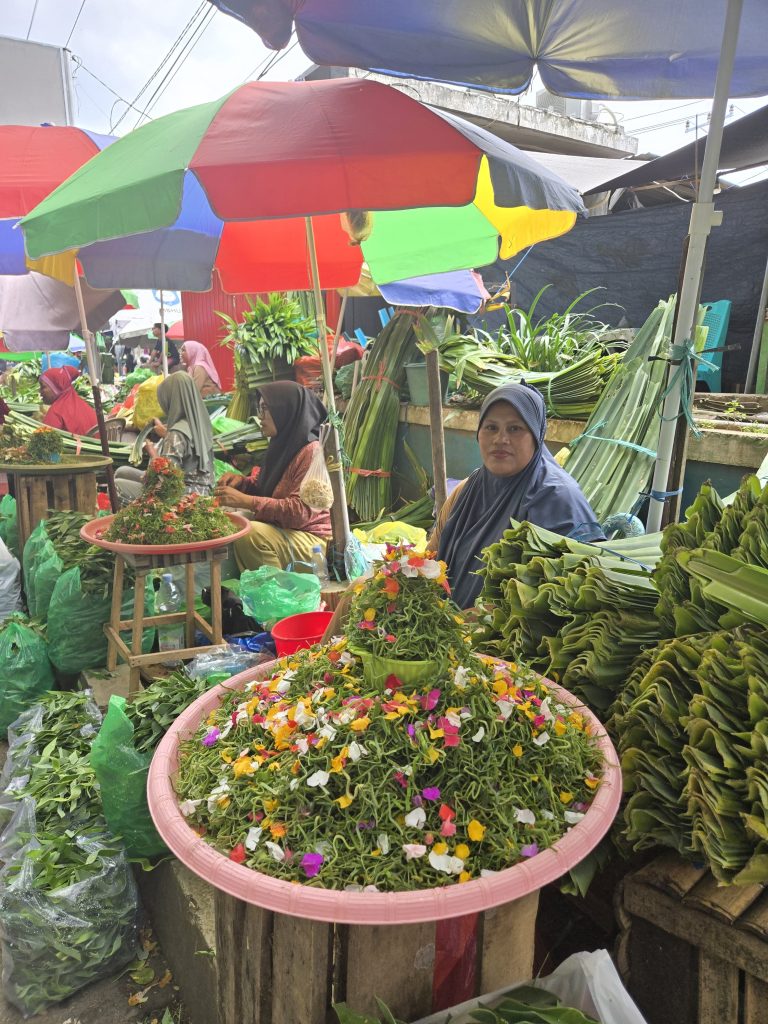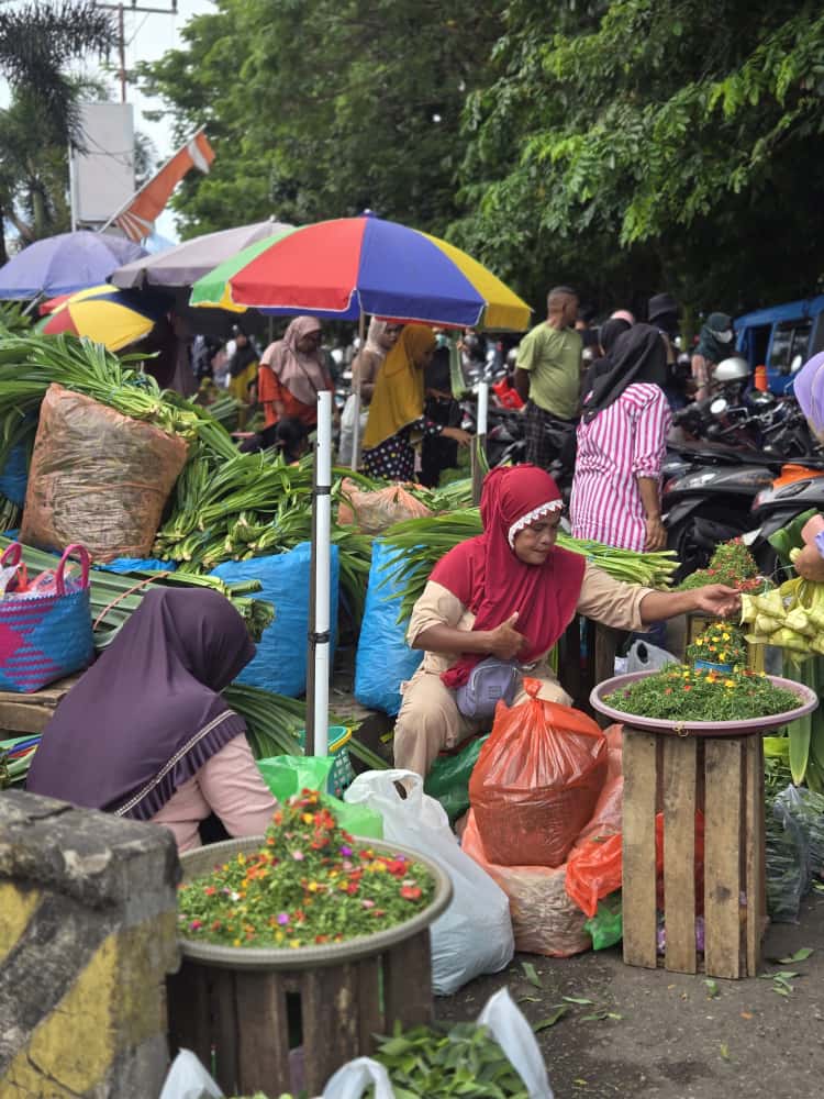 Di samping bunga, banyak pedagang juga menjual daun pandan, yang dimanfaatkan sebagai pewangi alami, bahan masakan, hingga bagian dari ritual tertentu. Dengan begitu, pasar bukan hanya wadah transaksi ekonomi, melainkan juga titik pertemuan antara kebutuhan spiritual dan keberlangsungan ekonomi rumah tangga.